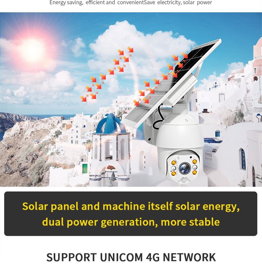 1. 100% Di-wifr& Solar Powered --- Camera Solar gwrth-ddŵr 4g awyr agored, 100% diwifr ac yn hawdd i'w osod. Mae camera diogelwch diwifr y panel solar ar ôl 3 awr o olau haul uniongyrchol yn cefnogi ei ddefnydd o ynni mewn un diwrnod. Mae batri 18650 adeiledig y gellir ailgodi tâl amdano hyd at 20000mAh yn ymestyn ei amser dygnwch, rydych chi'n rhydd i'w ddefnyddio ac nid oes yn rhaid i chi boeni am y tywydd. 365 diwrnod Cyflenwad pŵer di-stop i amddiffyn diogelwch eich cartref.